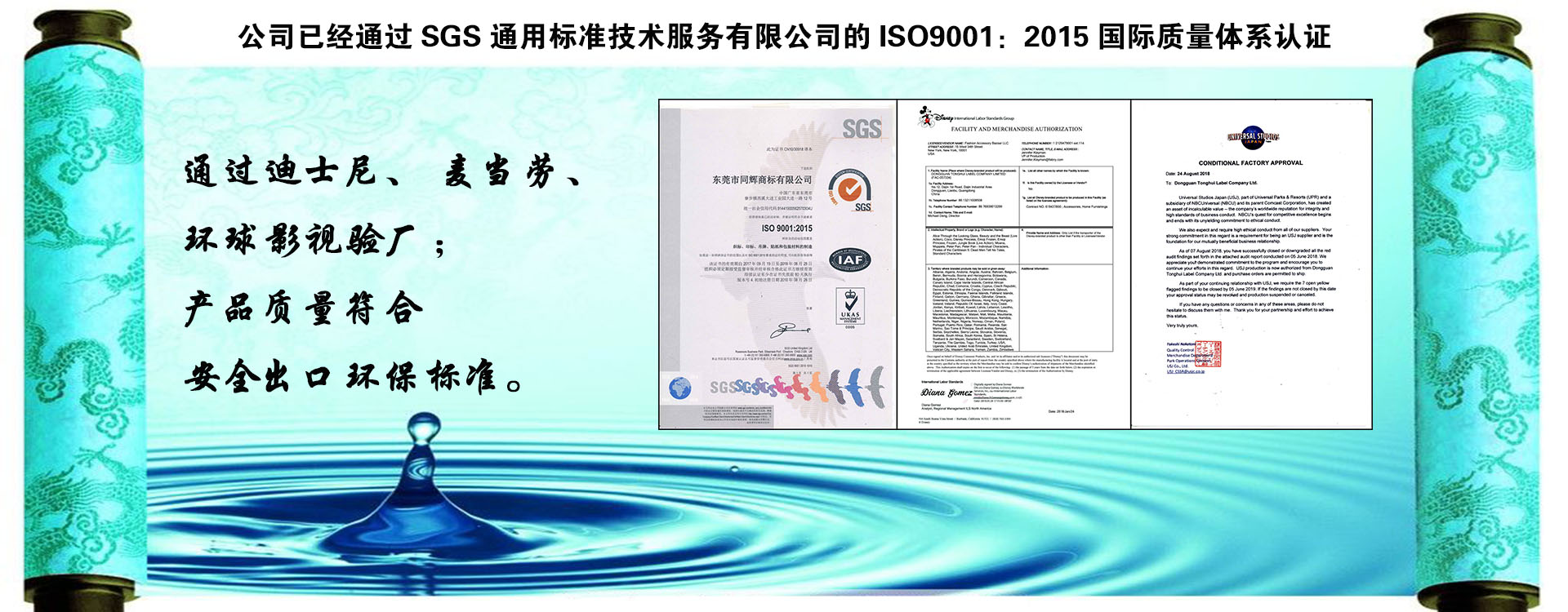 東莞市同輝商標(biāo)輔料及包裝印刷有限公司是一家專業(yè)從事商標(biāo)制造、包裝印刷的企業(yè),主營(yíng)生產(chǎn)和銷(xiāo)售:各類(lèi)織嘜商標(biāo),織章,印刷商標(biāo),印嘜,標(biāo)簽印刷,不干膠商標(biāo),絲印商標(biāo),熱轉(zhuǎn)印標(biāo),無(wú)感商標(biāo),燙嘜,皮牌商標(biāo),電壓商標(biāo)、商標(biāo)帶、繡花標(biāo),布貼標(biāo)、皮貼標(biāo)、商標(biāo)吊牌,彩卡,折盒等廣泛用于各行各業(yè)。工廠經(jīng)過(guò)多年的發(fā)展與開(kāi)拓,規(guī)模日益發(fā)展壯大。從設(shè)計(jì)制作、工程研發(fā)、生產(chǎn)制造、產(chǎn)后加工、品檢、物流配送、售后服務(wù)等一套完整的優(yōu)質(zhì)服務(wù)體系,及優(yōu)秀的經(jīng)營(yíng)管理團(tuán)隊(duì)。已通過(guò)SGS ISO9001:2008(新版是2015版)國(guó)際質(zhì)量體系認(rèn)證,產(chǎn)品質(zhì)量符合各國(guó)安全出口環(huán)保標(biāo)準(zhǔn)。承蒙國(guó)內(nèi)外客戶的大力支持,目前已有許多國(guó)際著名品牌定點(diǎn)授權(quán)我公司生產(chǎn),并是通過(guò)全球迪士尼FAMA認(rèn)證驗(yàn)廠,麥當(dāng)勞驗(yàn)廠,環(huán)球影視驗(yàn)廠的供應(yīng)商,是各行業(yè)值得信賴并具有實(shí)力的合作伙伴。
